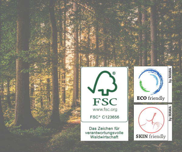 Plasthengere er utbredt, men ofte ikke bærekraftige, og det er grunnen til at vi ikke tilbyr dem hos MAWA. Det ser bedre ut med trehengere, men FSC® (FSC-C123656)-sertifisering (Sertifikatnummer SCS-COC-007973) er viktig her. En metallhenger er ofte laget av materialer som lett kan resirkuleres. Når du gjør det, bør du imidlertid være oppmerksom på belegget som sikrer antiskli-effekten: Hos MAWA bruker vi ikke tungmetaller og ftalatholdige myknere, fordi kleshengere kommer i kontakt med huden og klærne din hver dag.